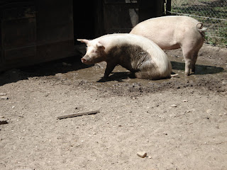 I really love that stuff! When we had eaten enough, we went to the Dutch Open Air Museum. It's a really large area, where they have rebuilt houses, farms and shops of the last two hundered years to "bring the past to life". At first we were both quite excited about it all, but in a while I became more interested in the flowers and animals that were around.